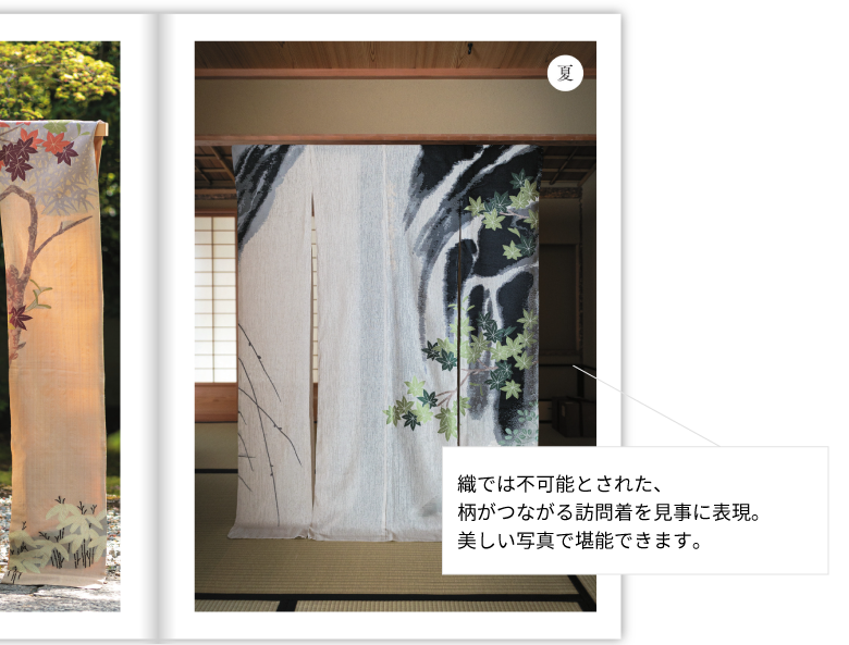 織では不可能とされた、柄がつながる訪問着を見事に表現。